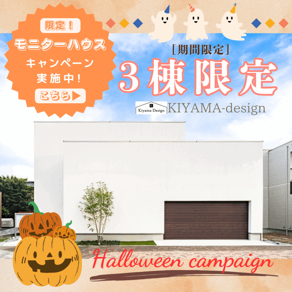 【10月イベント】ハロウィン期間限定!モニターハウスキャンペーン開催中! プロの目線からご提案。静岡市・焼津市・藤枝市の注文住宅・新築戸建てを手がける工務店なら当社へ。KIYAMA DESIGN(キヤマデザイン)コラム 静岡市・焼津市・藤枝市の新築・注文住宅・新築戸建てを手がける工務店 最新情報を更新。KIYAMA DESIGN(キヤマデザイン)のコラム 【10月イベント】ハロウィン期間限定!モニターハウスキャンペーン開催中!
