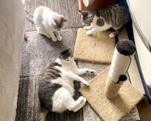 窓辺にキャットタワーを配置すると外の景色を楽しめる環境も整いますよ♪